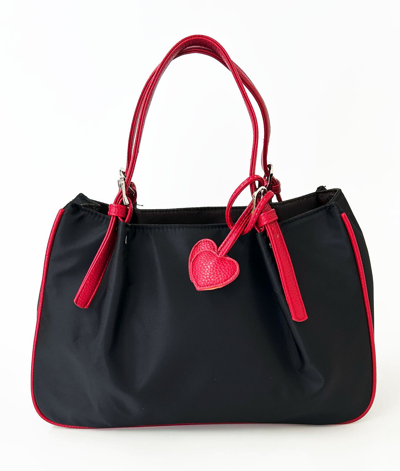 メイン収納は中仕切りファスナーで大きく開くため、荷物の出し入れも楽々。内側にはファスナーポケットとオープンポケットが備わっており、仕分け収納がしやすく、その日の必要なアイテムを整理整頓して持ち運べます。さらに、可愛らしいハートチャーム付きで、さりげないアクセントを加えています。エレガントハンドバッグで、毎日のコーディネートに洗練された雰囲気を添えてみませんか?