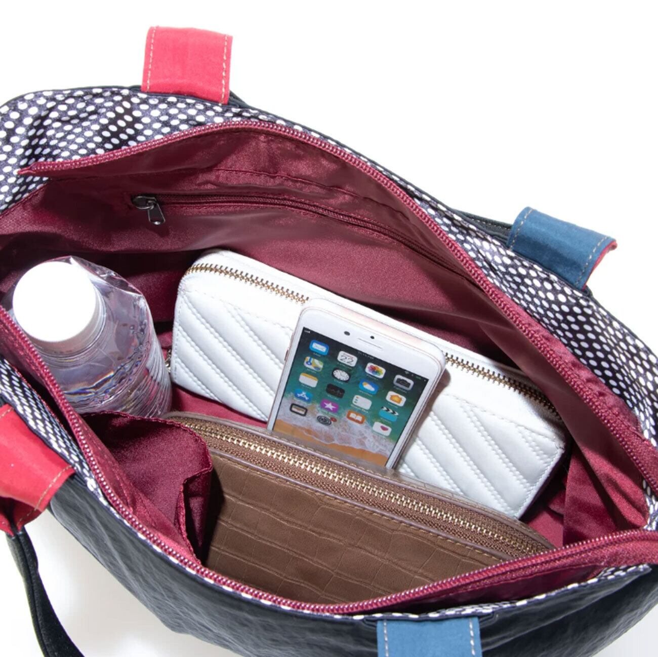 撥水生地を使用したドットハンドルアクセントバッグは、機能性とデザインを兼ね備えた魅力的なアイテムです!