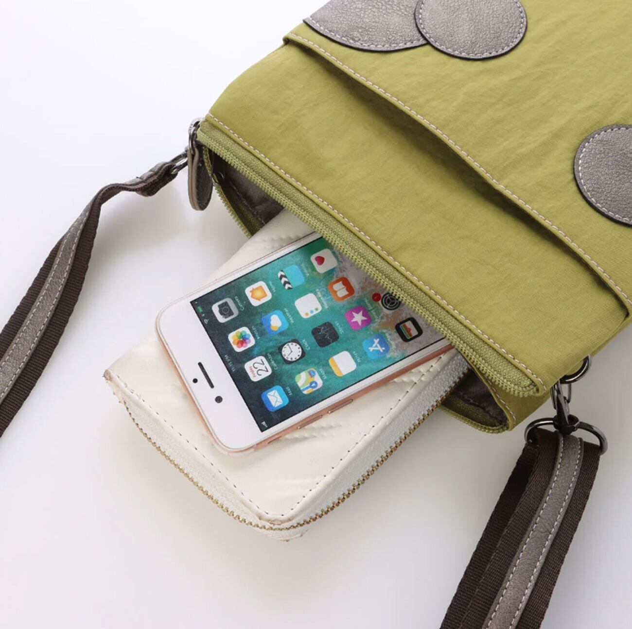 上質な撥水生地を使用したドットデザイン スマホポシェットは、スタイリッシュさと機能性を兼ね備えた必見アイテムです!