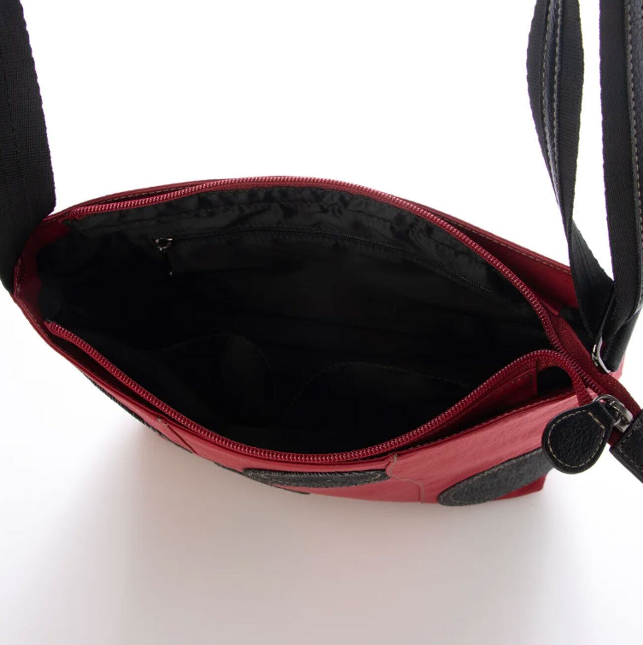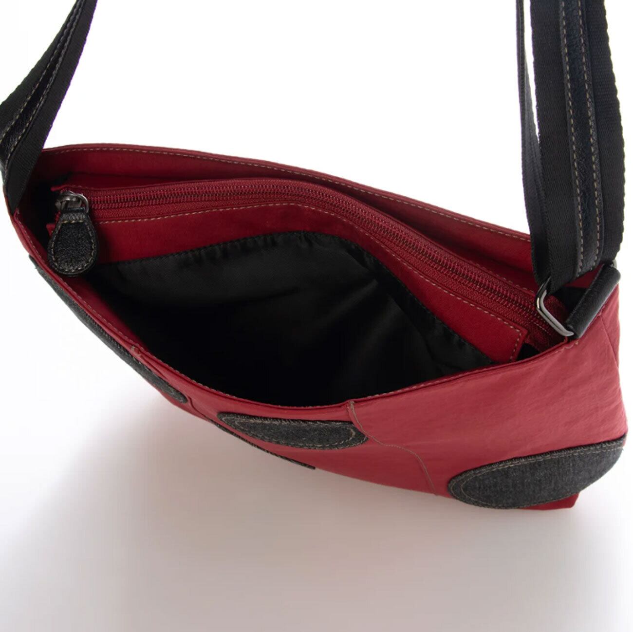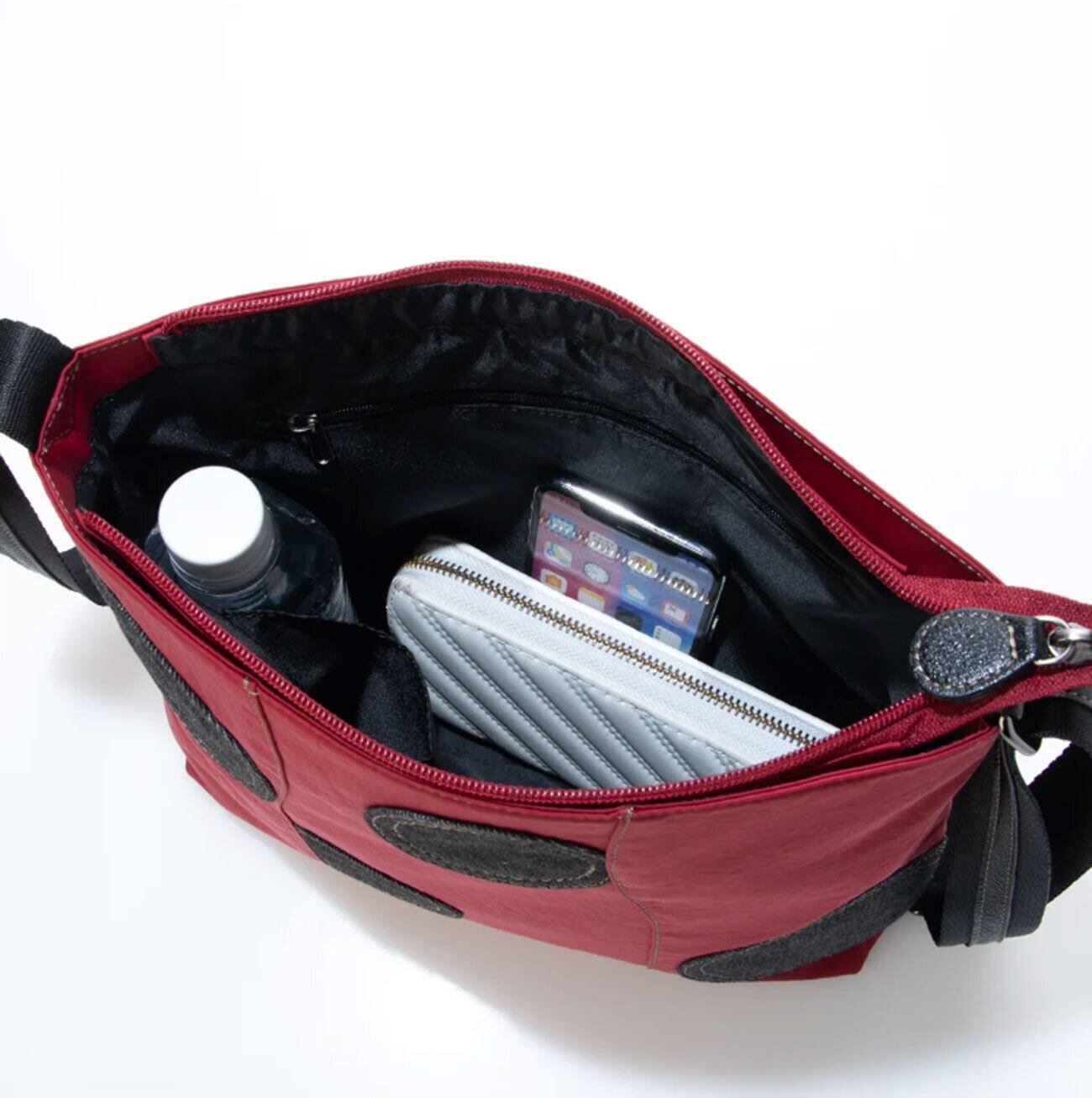 このショルダーはスクエア型で使いやすく、メイン収納には500mlのペットボトルが縦に余裕で収納可能です。
